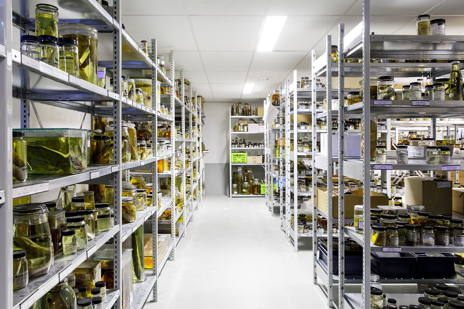 Useful terms to search for in the field Text search include: complete specimen, mount, skeleton, skull and study skin. To search for material kept on alcohol, use the term alcohol in the box Text search. Searching for individual (often fossil) skeletal elements (e.g. calcaneum, canine, mandibula, patella) is also possible in that box. When searching for a part of a locality string in Locality, e.g. Hoek van Holland (being part of Rotterdam, Hoek van Holland) be sure to include asterisks, e.g. *Hoek van Holland* and click the appropriate suggestion from the menu that appears. To limit results to either fossil or recent (preserved) specimens, use the box Basis of record. Finally, simply click a record to see all details of that particular specimen.